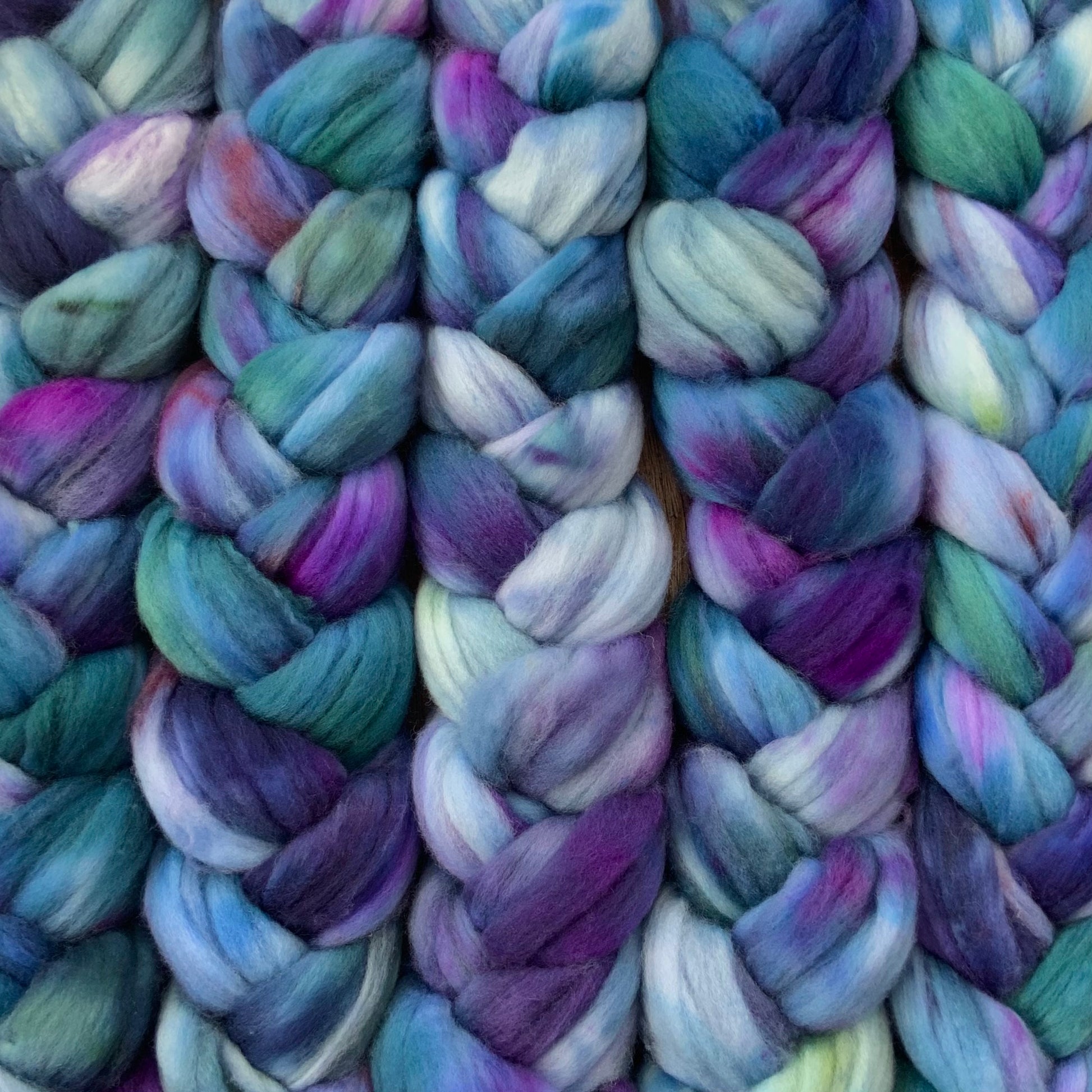 This blend of combed top is perfect for spinning sock yarn because the nylon adds durability. It will be great for anything that you want to be machine washable and hard wearing yet still be soft.