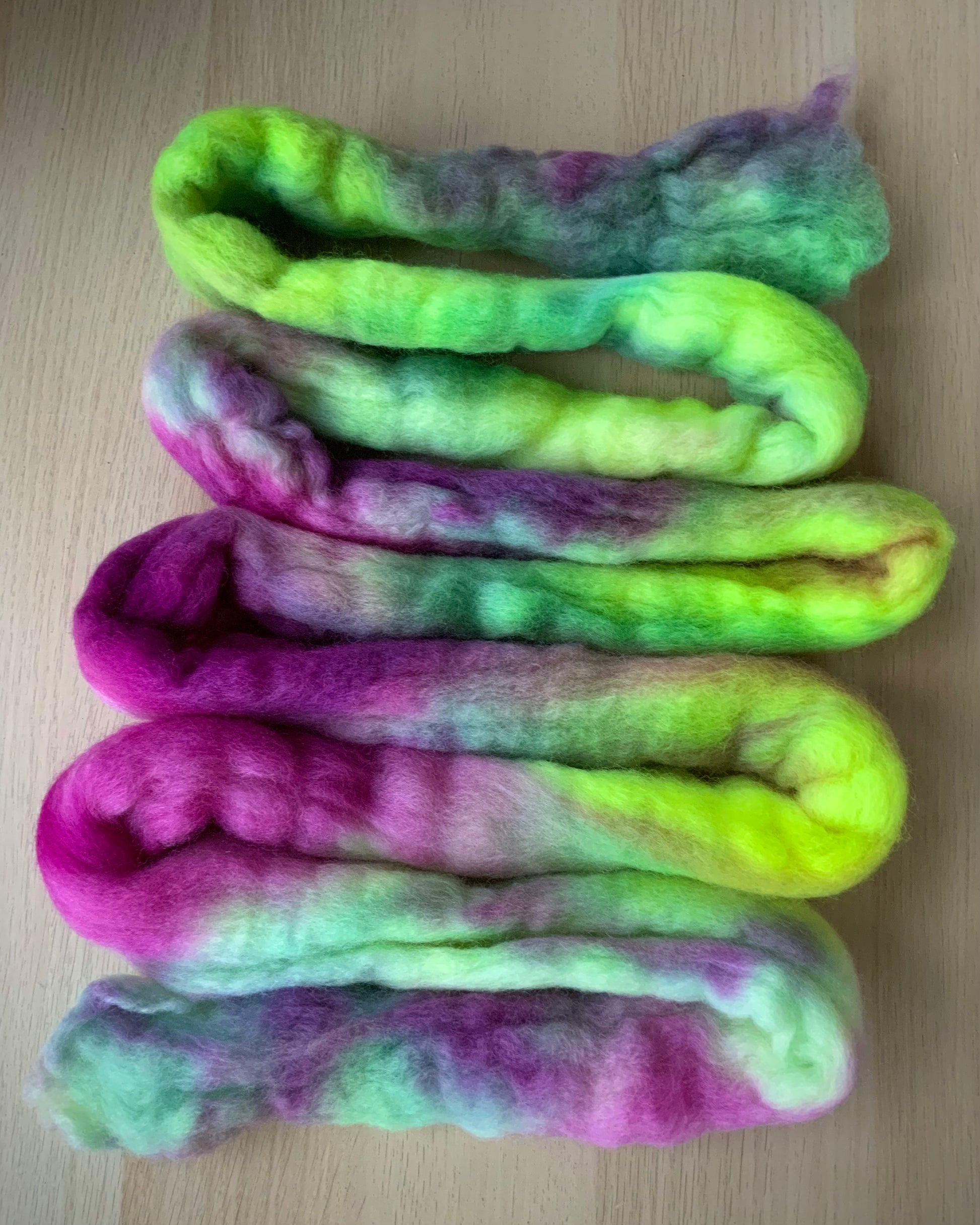 CARE: Gentle hand wash cold with wool/delicate wash and dry flat. For more information on looking after hand dyed silk, see https://spinningtopfibre.com.au/pages/caring-for-your-wool